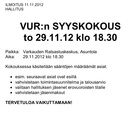 VUR:n Syyskokous torstaina 29.11.2012