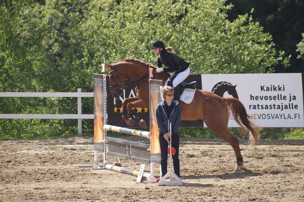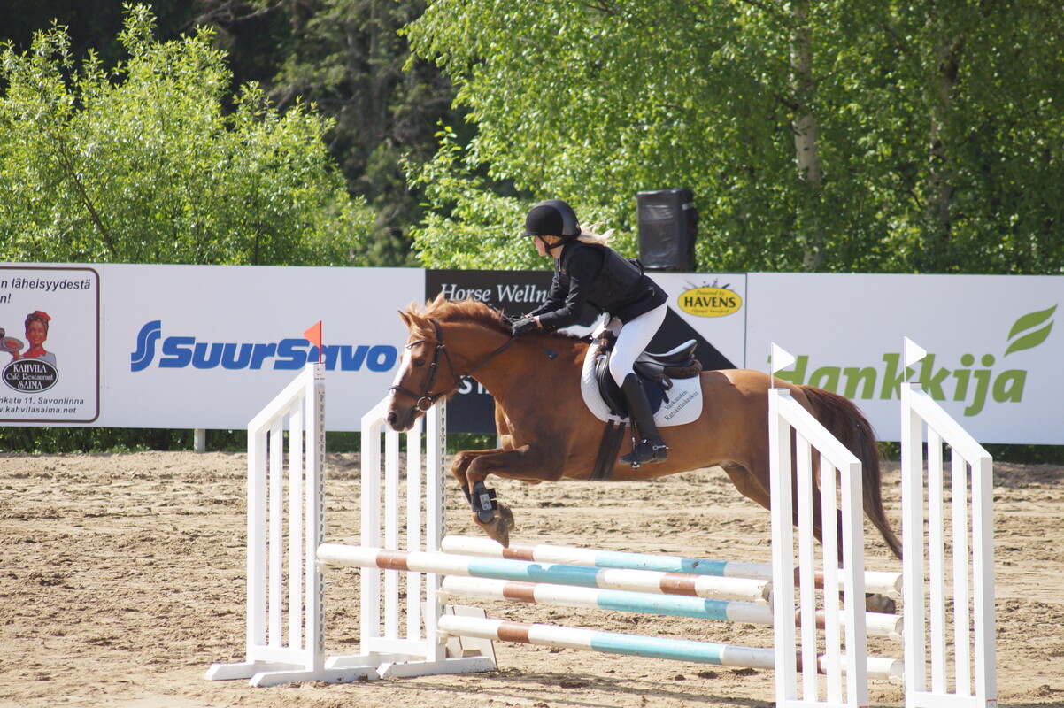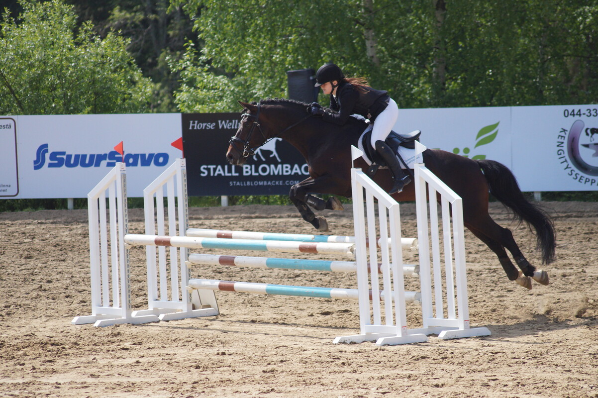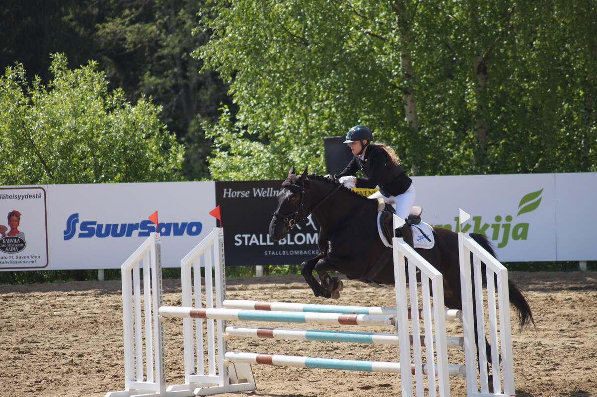 VURrilaisista Itä-Suomen Powercupin karsinnoista Ypäjän elokuiseen finaaliin ratsastivat Enna Kinnunen - Othello IV, Miila Pulkkinen - Ronny, Elina Teittinen - Puaro sekä Tuuli Torvinen - Bingo III Eilen lauantaina, Savonlinnassa kisattiin kouluratsastuksen parissa. Lauantaina kaksi luokkavoittoa ja seitsemän sijoitusta! Tänään sunnuntaina Savonlinnassa oli vuorossa esteratsastuskilpailut. VURrilaisten aamu alkoi ensimmäisessä luokassa 70-80cm, jossa sijoituksen ratsastivat Ilona Jäntti - Odüssus, Emmi Purhonen - Aveiro sekä Miila Pulkkinen - Ronny. Toisessa luokassa 70/80/90cm ratsastettiin Itä-Suomen Powercupin aluekarsinta ja ratkaistiin liput Ypäjän finaaliin. VUR ratsukot menestyivät loistavasti! Miila Pulkkinen - Ronny voittivat luokan, 4. Enna Kinnunen - Othello IV, 6. Sini Pelkonen -Kvanta, 8. Elina Teittinen - Puaro. Powercupin karsinnoista yhteistuloksissa yhdeksän parasta ratsukkoa jatkavat Ypäjän finaaleihin. Tänä vuonna sinne matkaa neljä VURrilaista - huippua! Yhteistulosten 3. Enna Kinnunen - Othello IV, 4. Miila Pulkkinen - Ronny, 7. Elina Teittinen - Puaro sekä 8. Tuuli Torvinen - Bingo III Kolmannessa eli 90cm:n luokassa VURrin Saija Koivisto ratsasti voittoon hevosella Othello IV. Sunnuntaina kaksi luokkavoittoa ja kuusi sijoitusta. Erityisonnittelut Miila Pulkkiselle ja Ronnylle, joiden viikonlopun suoritus oli vertaansa vailla. Molemmista lajeista sekä voitto että sijoitus eli jokainen rata oli erittäin onnistunut. Onnittelumme ihan jokaiselle viikonlopun kisoista ja huippuloistavista suorituksista!! Ja kiitos myös mahtavalle valmentajalle Satu Haukalle tiimeineen! Tulokset löytyvät: http://online.equipe.com/sv/competitions/16433 Oheisessa linkissä Satun kuvaama Saijan ja Oton rata. Liitteet