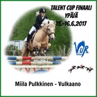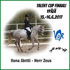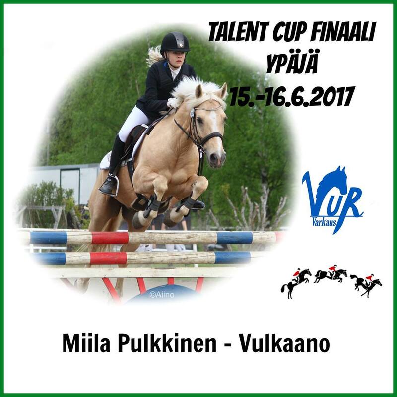 Tuliaisina Ypäjän kisaviikolta on hyviä kokemuksia sekä ratsastajille että ratsuillekin. Molemmat ratsastivat kelpo radat niin Talent Cupin koulu kuin esteosuudella - Miila Pulkkinen sijoittui yhteistuloksissa kymmenenneksi ja Ilona Jäntti sijalle viisitoista yli neljänkymmenen muun poniratsukon joukosta. Torstaina oli kouluratsastuspäivä lämmittelyksi Talen Cupiin molemmat ratsukot, Miila Pulkkinen - Vulkaano sekä Ilona Jäntti - Herr Zeus, menivät Helppo B3 radan. Yhteensä neljänkymmennen lähtijän joukosta Ilonan sijoitus oli 17 ja Miilan 19. Seuraavana vuorossa olikin Talent Cupin kouluosuus, jossa ratana FEI Helppo B Lasten esiohj. A 2015 ja lähtöjä yhteensä 41. Miila ratsasti luokassa sijalle 8. prosentein 63.077% - Ilonan sijoitus kahdeskymmenes prosentein 60.962% Talent Cup kouluosuus tulokset