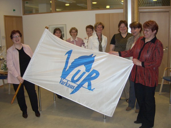 Varkauden Urheiluratsastajat ry juhlisti 15 v. juhlavuotta julkaisemalla seuralle oman lipun. Lipunnaulaustilaisuus järjestettiin 10.5.2005 Nordea – pankin tiloissa. Tilaisuus oli mukava ja lämminhenkinen, jossa monet ihmiset naulasivat historiallista seuran lippua. Jatkossa seuran lippu on esillä aina ratsastuskilpailuissa. Ensimmäisen kerran lippu liehuu VUR 15 v. juhlakilpailuissa toukokuun lopussa. Varkauden Urheiluratsastajat ry juhlisti 15 v. juhlavuotta julkaisemalla seuralle oman lipun. Lipunnaulaustilaisuus järjestettiin 10.5.2005 Nordea – pankin tiloissa. Tilaisuus oli mukava ja lämminhenkinen, jossa monet ihmiset naulasivat historiallista seuran lippua. Jatkossa seuran lippu on esillä aina ratsastuskilpailuissa. Ensimmäisen kerran lippu liehuu VUR 15 v. juhlakilpailuissa toukokuun lopussa. Juhlavuoden kunniaksi päätimme uudistaa logoamme vastaamaan tämän päivän tarpeita. Järjestimme logo-kilpailun, johon tuli ehdotuksia kymmenkunta. Kilpailun voittajaksi ja logon suunnittelijaksi hallitus valitsi Milla Makkosen. Milla Makkonen harrastaa itsekin ratsastusta ja kuuluu VUR:n tuntiratsastajat – ryhmään. Aikaisempi logomme viittasi suoraan esteratsastusseuraan, mutta tämä uuden logon hevoskuva ei rajaa mitään lajia pois. Seuramme ratsastajat ovat tunnettuja molemmissa lajeissa, niin esteillä kuin kouluratsastuksessakin. Logon sininen väri on isänmaallinen ja kuvaa myös seuran kotipaikan vesistöjä. Uuden logon myötä seuralle hankittiin oma lippu. Lipun hankinnassa seuraa auttoi paljon Varkauden Urheiluseurat ry:n puheenjohtaja Hannu Kiminkinen. Lippua olivat naulaamassa hallituksen jäseninä Minna Heikkinen, Satu Haukka, Sinikka Makkonen, Sari Kosunen, Pirjo Väisänen, Henna Vokkolainen, Sirpa Holopainen ja Ulla Torvinen. Kutsuttuina lippua naulasivat Milla Makkonen, Janne Lappi, Maritta Laakso, Kari-Pekka Kinnunen, Hannu Kiminkinen, Tiina Laine, Marita Räsänen, Henna Lankinen, Jenna Glumerus, Jennika Holopainen, Anni Torvinen, Milja Jumppainen, Maija Karjalainen, Ville Puustinen ja Heikki Haukka. Nauloja oli varattu vähän enemmän, joten lopuksi seuran junnut naulasivat loput naulat yhdessä. LIPPU LIEHUKOON KOMEASTI NYT JA TULEVAISUUDESSA! |