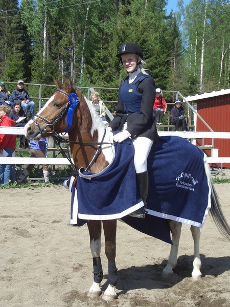 ![]() Assi Savolainen - Jameli, KuoR on kouluratsastuksen pääluokan Helppo A:1 voittaja ja 150 € kunniapalkinnon saaja. ![]() Petra Heikkinen - Calmonta; PKUR vauhdissa 100 cm:n esteellä, jonka on tehnyt taiteilija Raimo Vokkolainen. |