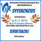 Kokous pidetään Varkauden Ratsastuskeskuksen Sossussa, lauantaina 9.11.2019 heti kouluratsastuskilpailuiden päätyttyä noin klo 15. Esityslistalla sääntömääräiset asiat kts. liitteenä olevat kutsu ja esityslista! T E R V E T U L O A mukaan vaikuttamaan!! Liitteet