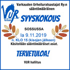 VUR seuran Syyskokous la 9.11.2019