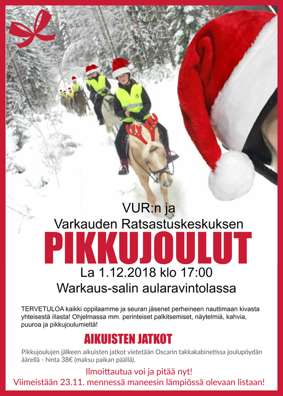 VURrin ja Varkauden Ratsastuskeskuksen yhteiset pikkujoulut la 1.12. klo17