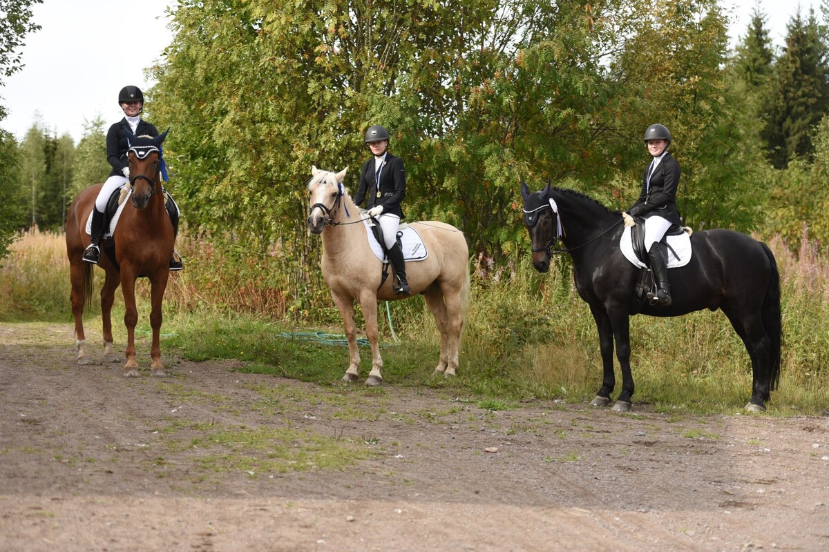 | 1 | Eerika Karvinen | Miks | | 152 | 152 | 72,381 | | | Varkauden Urheiluratsastajat r | Mon Cherg - Diimer | 1 | | | 2 | Hanna Virtanen | Avants | | 145 | 145 | 69,048 | | | Varkauden Urheiluratsastajat r | Avots - Arods | 2 | | | 3 | Saaga Bäck | Celius | | 144 | 144 | 68,571 | | | Tampereen Ratsastusseura ry | Acke - Kanyl G | 3 | | | 4 | Eea Tirkkonen | Celius | | 141 | 141 | 67,143 | | | Siilin Ratsastajat ry | Acke - Kanyl G | 4 | | | 5 | Laura Jylhä | Odüssus | | 139 | 139 | 66,190 | | | Varkauden Urheiluratsastajat r | Overok - Dukat | 5 | | | 6 | Veera Savolainen | Avants | | 138,5 | 138,5 | 65,952 | | | Varkauden Urheiluratsastajat r | Avots - Arods | 6 | | | 6 | Aino Eronen | Coolatuder Shadow | | 138,5 | 138,5 | 65,952 | | | Varkauden Urheiluratsastajat r | | 6 | | | 6 | Helmi Haataja | Klockas Ida | | 138,5 | 138,5 | 65,952 | | | Suonenjoen Vasama Riders ry | Klockas Alexander 74 SH - Freeman of Marshwood | 6 |