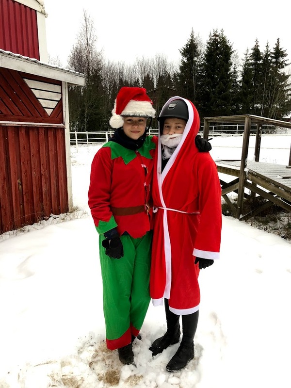 Tänään lauantaina kisattiin Varkauden Ratsastuskeskuksella VUR:n vuoden viimeiset kilpailut - Kinkkuestekisat! Hieman leikkimielellä ratsut kilpailuun arvottiin (toki turvallisuus huomioiden), pukeutuminen oli hieman normaalia monipuolisempaa ja kisa käytiin yhtenä luokkana, mutta kahdella estekorkeudella. Ja voittajallehan oli toki luvassa kinkkua jouluksi. Tämän vuoden voittajaksi suoriutui ratsukko tonttu ja poro eli Miila Pulkkinen - Ansa. Toiseksi sijoittuivat Elviira Vartiainen - Ronny, kolmanneksi Emma Laukkarinen - Ansa, neljänneksi Ronja Vehviläinen - Maikki sekä viidenneksi Katja Pietiläinen - Antero. Lisäksi jouluisen tsemppipalkinnon sai Sinna Kurkela - Olli.