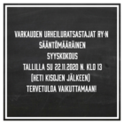 Varkauden Urheiluratsastajien sääntömääräinen syyskokous järjestetään sunnuntaina 22.11 n. klo 13 Varkauden Ratsastuskeskuksella heti estekisojen päätyttyä. Kokouksessa käsitellään sääntömääräiset asiat kuten: